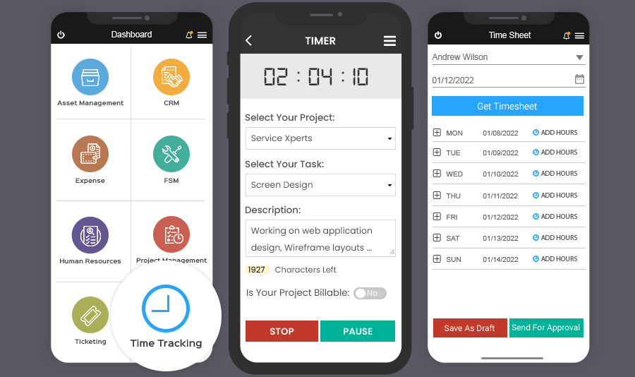 Talygen is also available as a mobile app that allows users to track time online anywhere and anytime. Our app is available on Android and iOS. Managers and employees have the flexibility of tracking time from any place and any device.